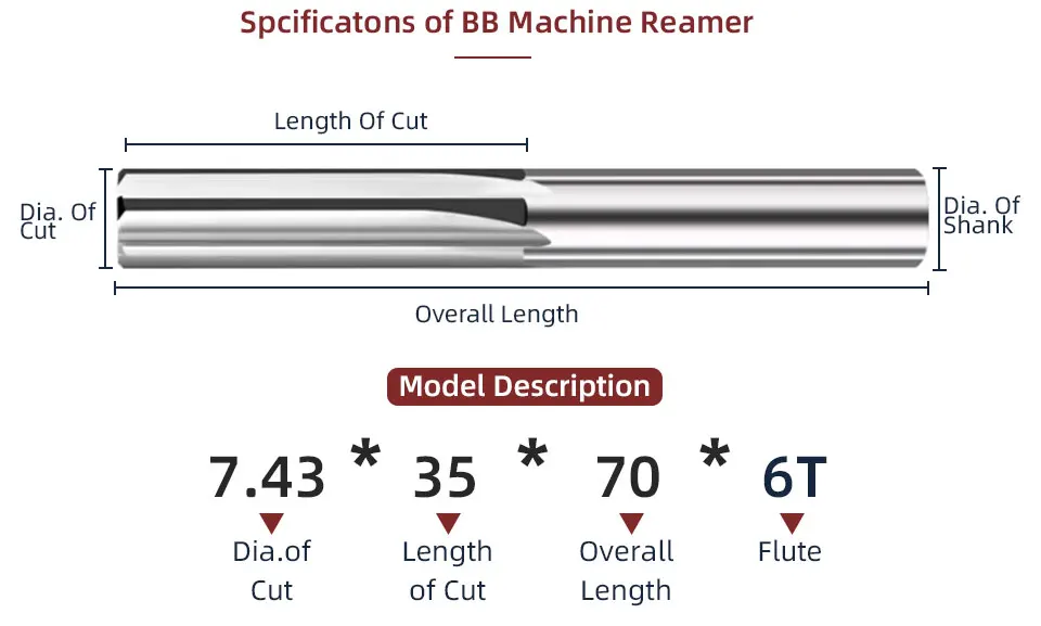 BB Machine Reamer 7.43mm~12.09mm Straight Flute Solid Carbide Uncoated Tolerance Chucking Metal Cutter CNC for Aluminum