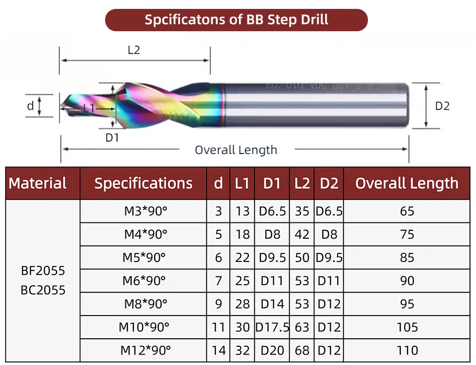 BB Step Drill 90 Degree 180 CNC Precision Solid Carbide Drilling Tools DLC Coated Screw Hole