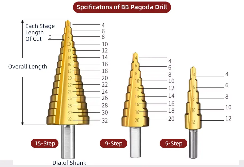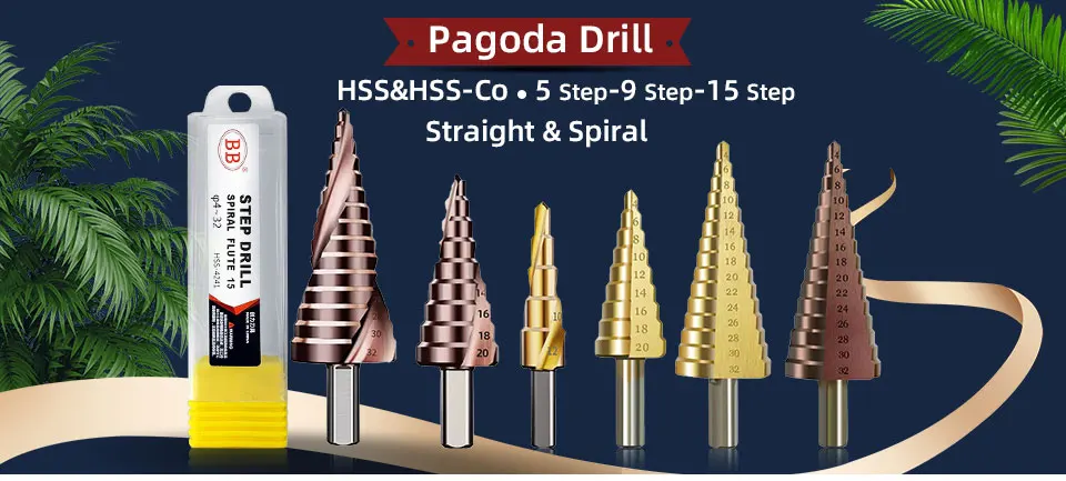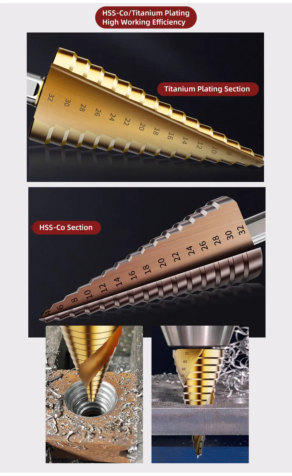 BB Step Drill Bit HSS 4-12 4-20 4-32 Titanium Coated Cobalt Cone Spiral Straight Flute Steel Wood Metal Hole