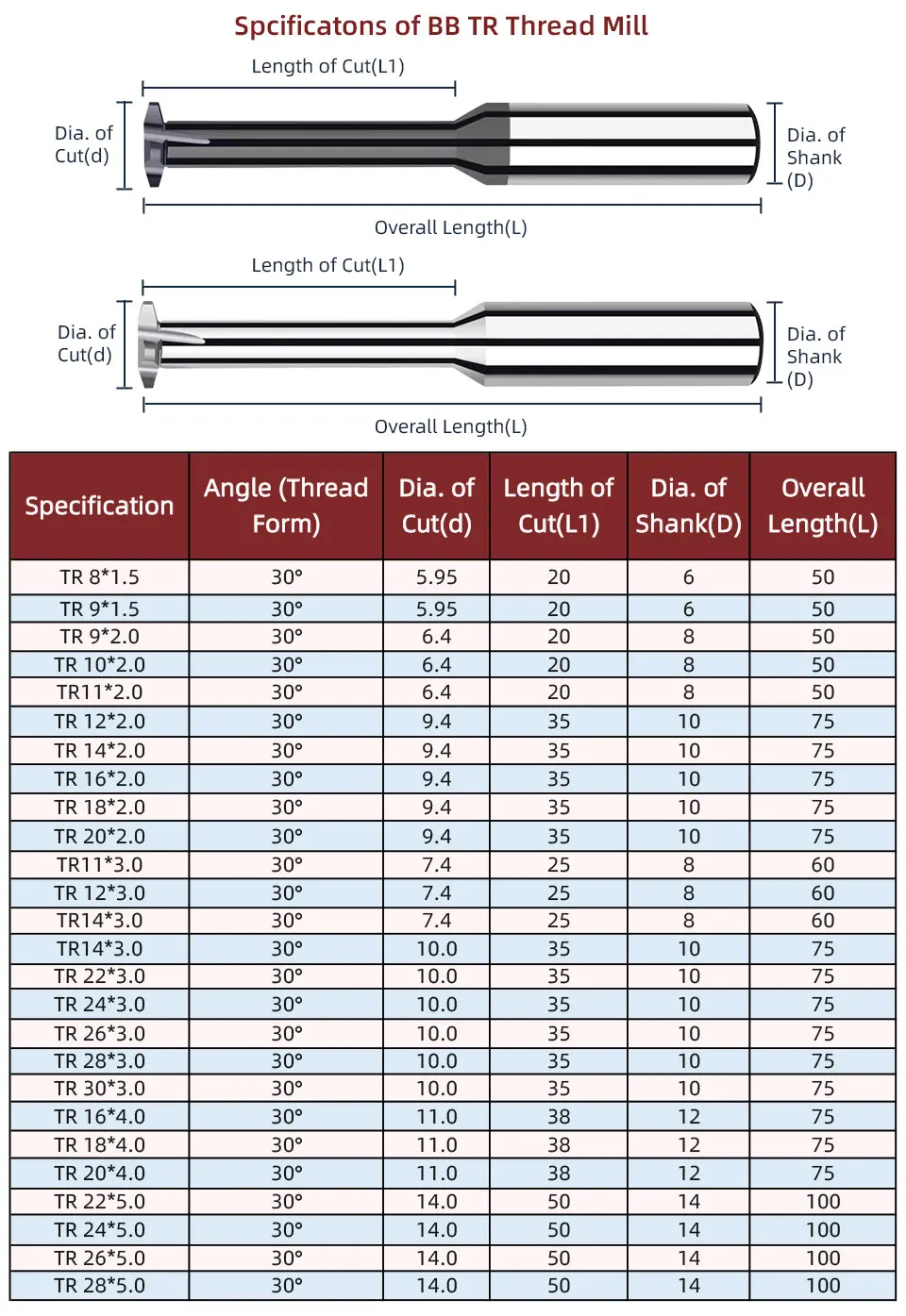 BB Thread Milling Cutter TR Trapezoidal Thread Tap CNC End Mill Hole Making Carbide BF2055 BK2055 TR8 TR10 TR20