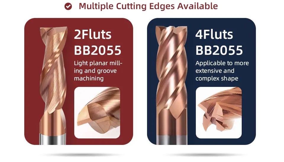 2-flute end mills are typically used for simpler milling tasks such as light planar milling and groove machining. Due to their fewer cutting edges, they are suitable for small-scale roughing and the machining of less complex workpieces.
