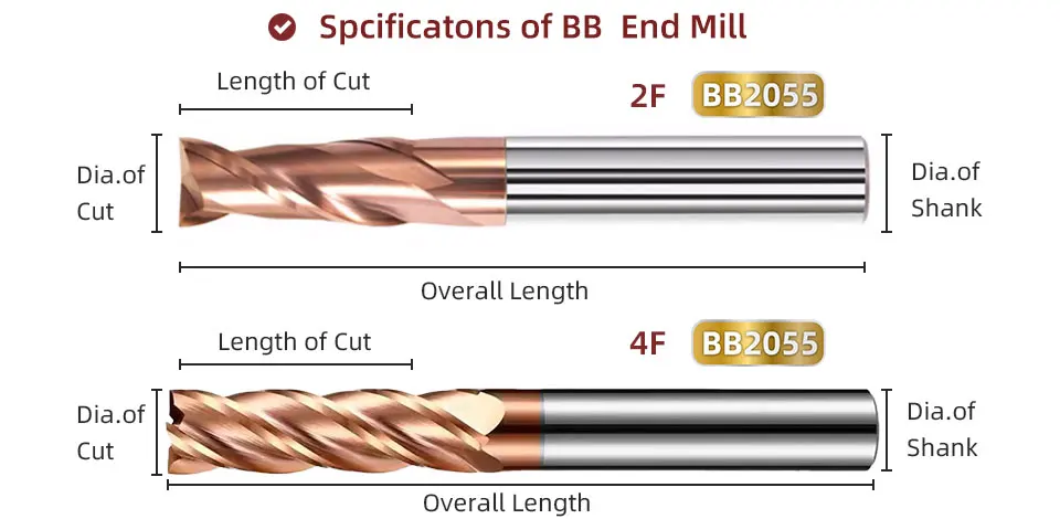 BB 2F 4F Carbide End Mill 1.1mm -25mm CNC Cutter Mini Tool 4 Flute Metal Steel Wood Cutter ISO