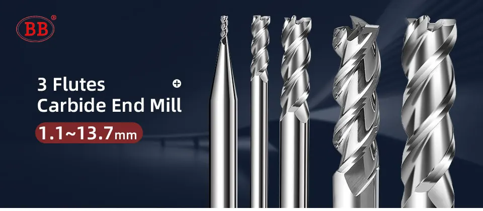 BB 3 Flutes Teeth 1.1mm~13.7mm Carbide End Mill CNC Cutter Decimal Point Diameter Aluminum Copper Mini Tool Wood Acrylic HRC55