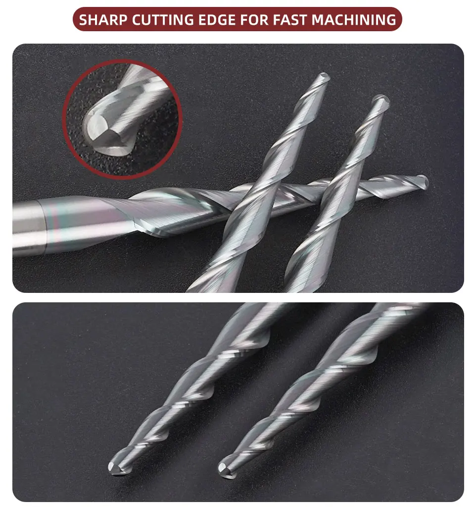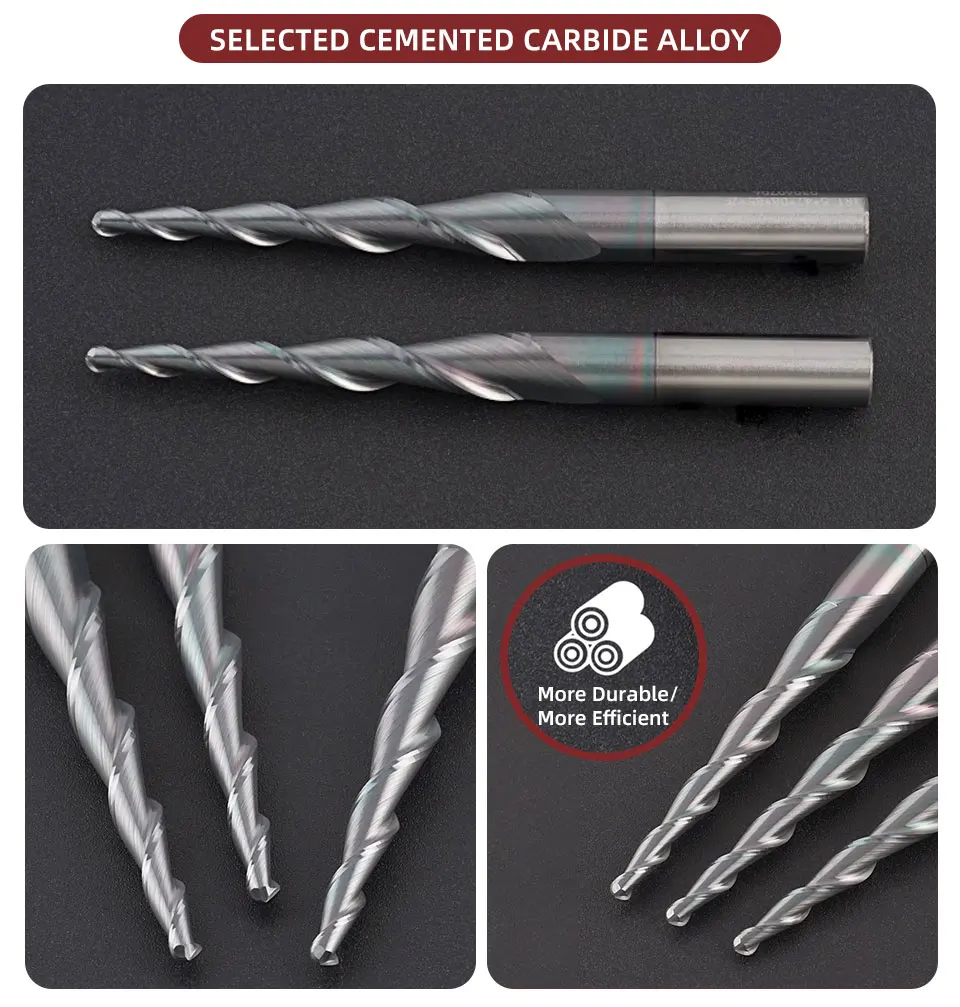 BB Taper Ball Nose End Mill Solid Carbide Engraving Router Bit Relief Wood Metal CNC Milling Cutter Coated 3.175mm 4mm 8mm 10mm