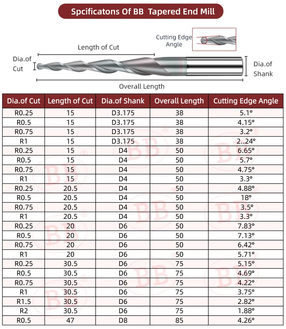 BB Tapered Ball End Mill (1pcs)