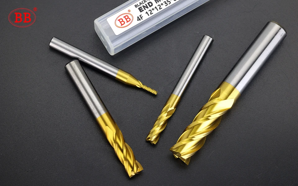 BB TiN Coating End Mills HSS ISO Imperial Inch Diameter Metal Cutter Router Bit High Speed Steel 1-25mm 4 Flutes 3.175 1/8