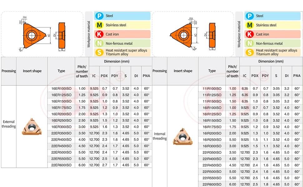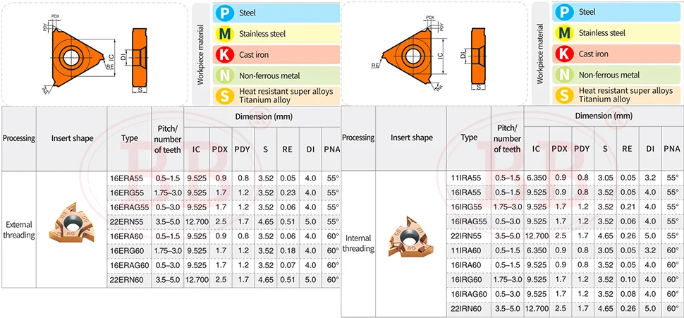 Used for thread turning of steel, stainless steel, cast iron and other materials