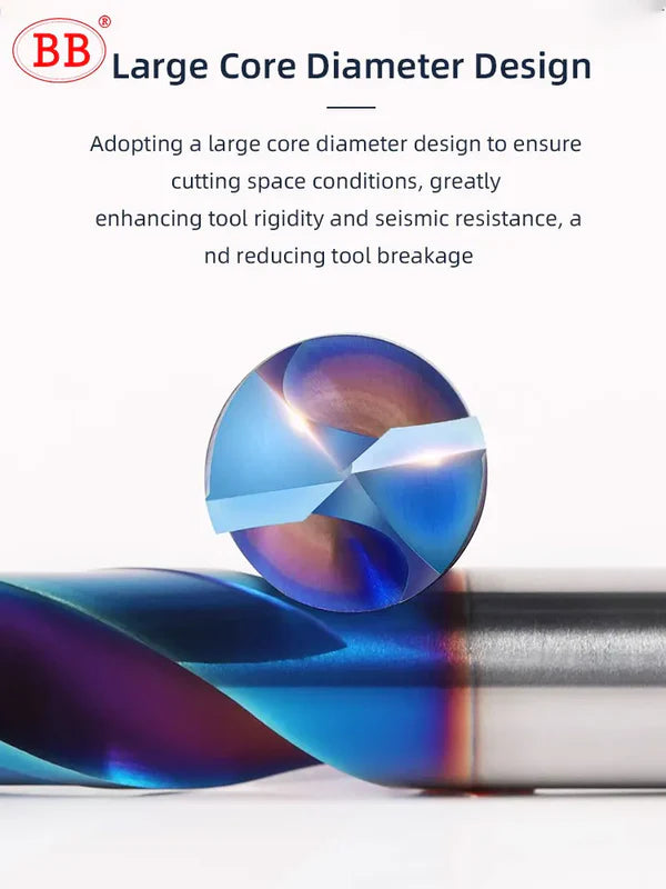 This large core diameter design ensures sufficient chip space while significantly enhancing tool rigidity and vibration damping. The result is dramatically reduced risk of tool breakage and more stable machining performance.