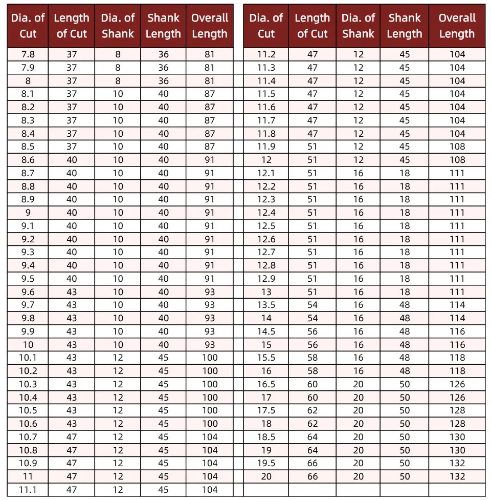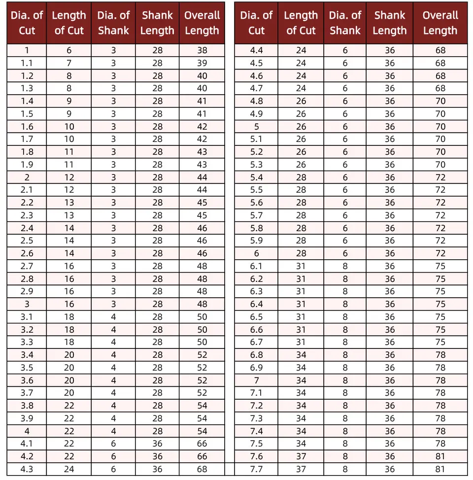 Dia.of Cut ≤ 1.9 Drill Point 118°