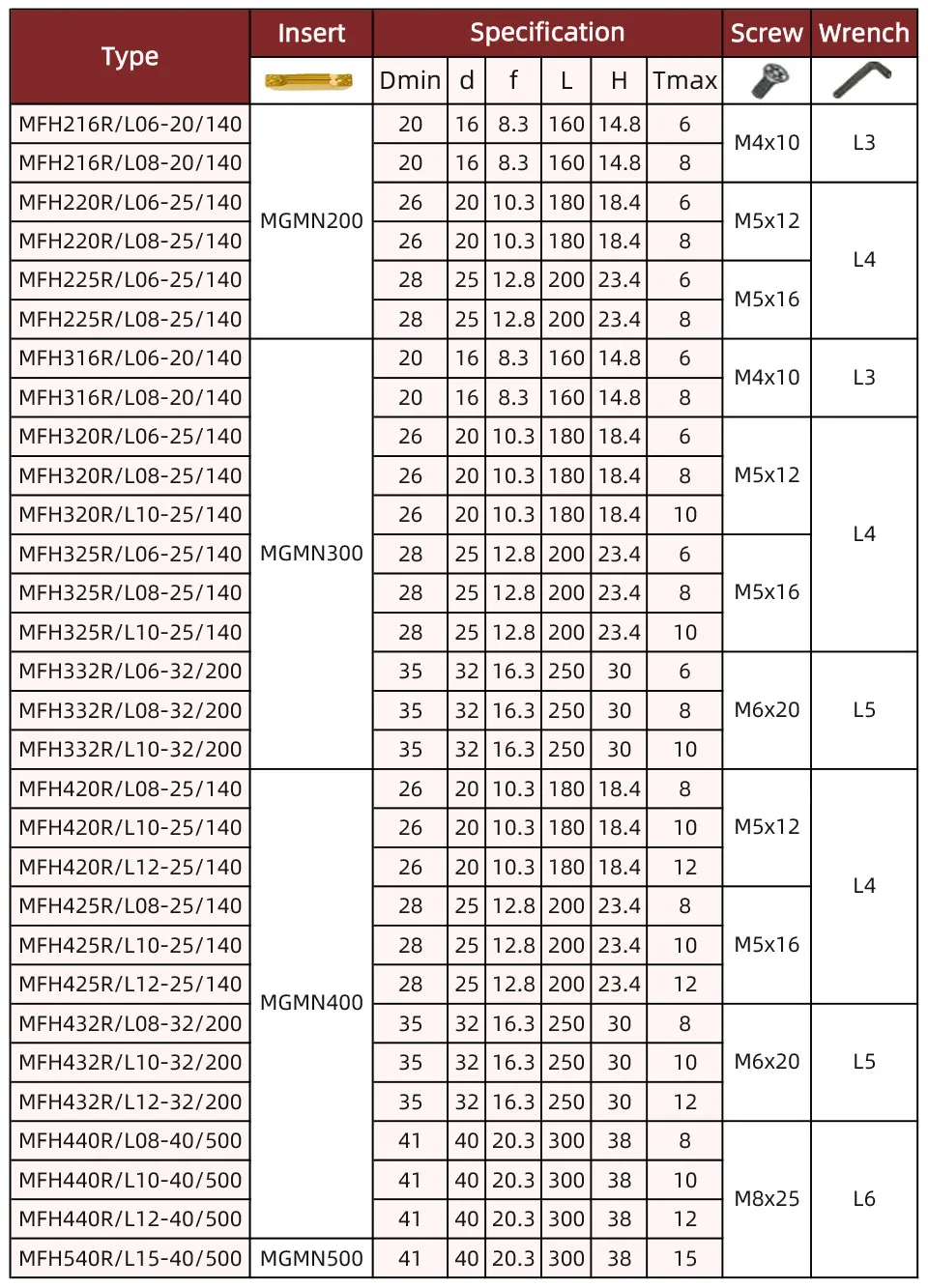 BB MFH MFHR Grooving Cutter Insert Diameter 16 20 25