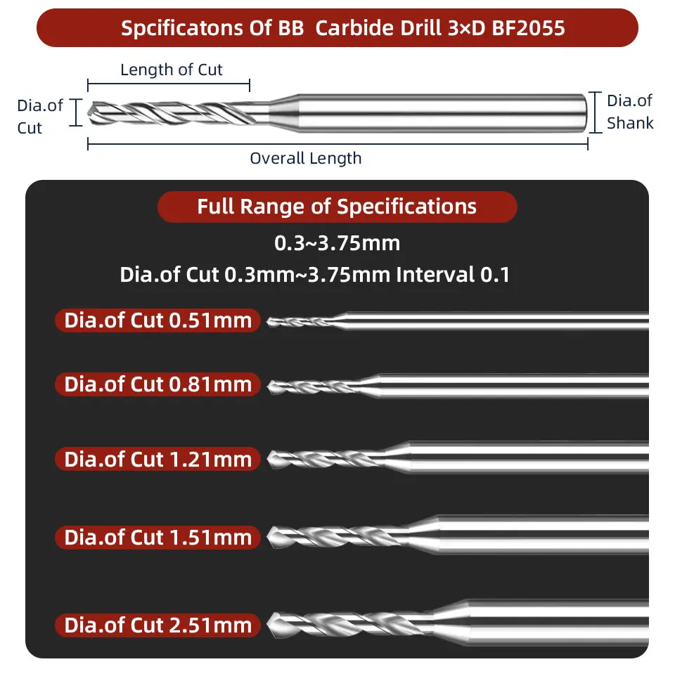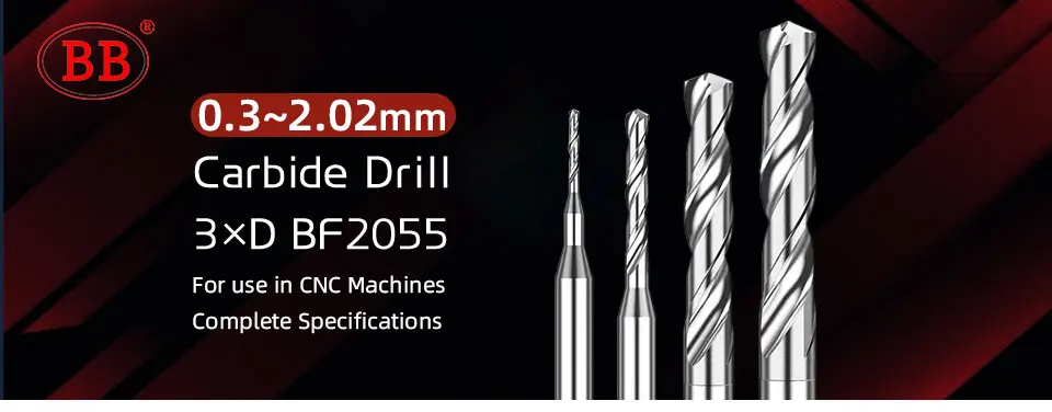 BB Micro Drill Solid Carbide Bit Mini CNC Aluminum Hole Making External Cooling 3xD Shank Diameter 4mm D4 BF2055 0.3~2.02mm