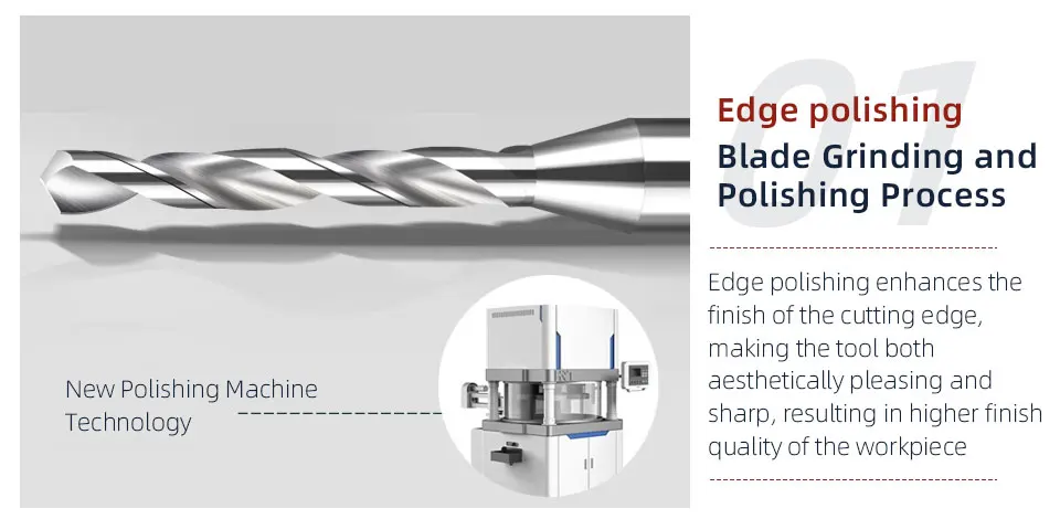 Edge polishing enhances the finish of the cutting edge, making the tool both aesthetically pleasing and sharp, resulting in higher finish quality of the workpiece