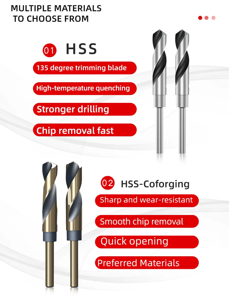 HSS-Co: for steel, stainless steel,