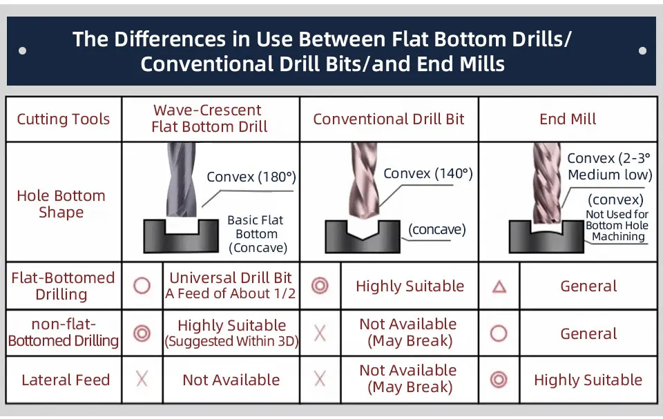 The Differences in Use Between Flat Bottom Drills/ Conventional Drill Bits/and End Mills