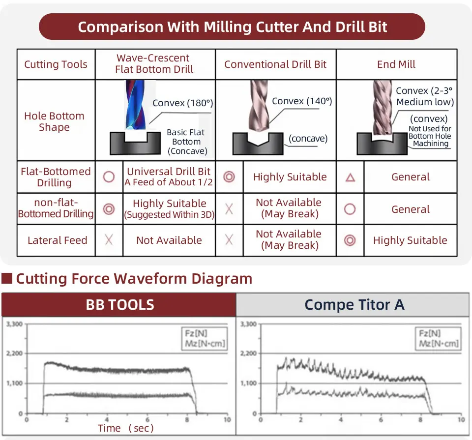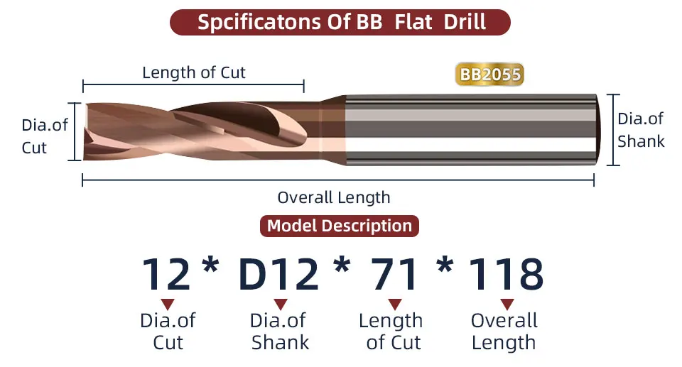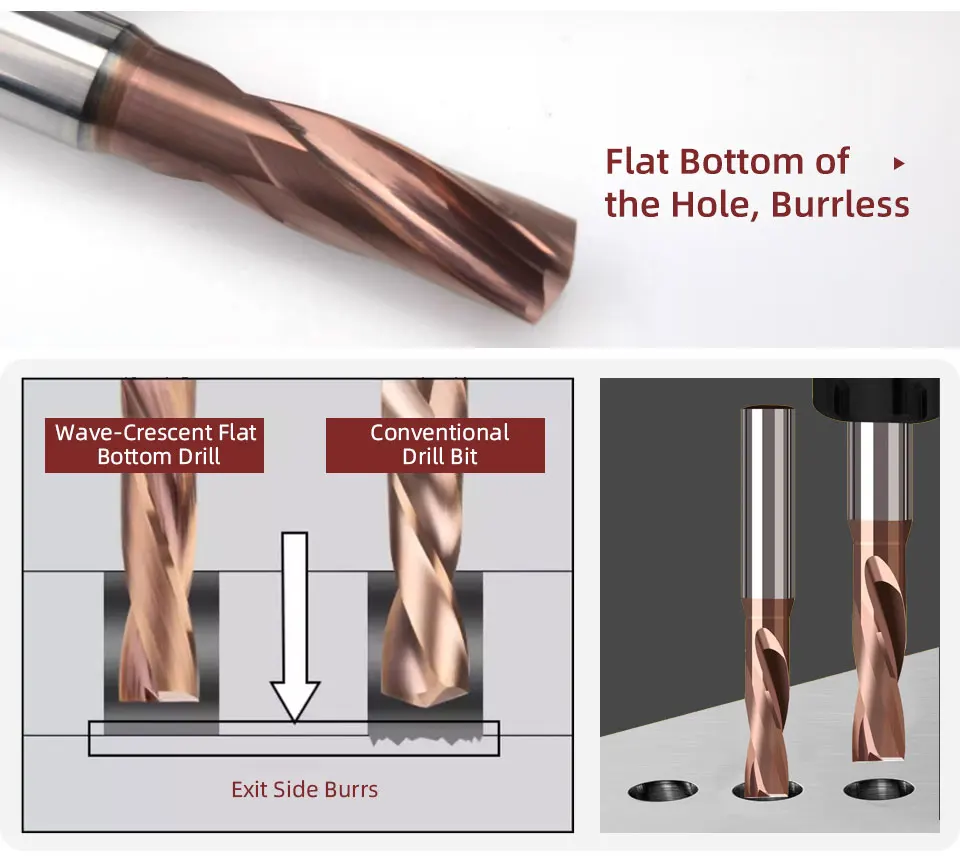 BB Flat Drill 180° CNC Inclined Curved Surface Bottom Hole Making Counterboring Tool Tungsten Carbide Steel External cooling