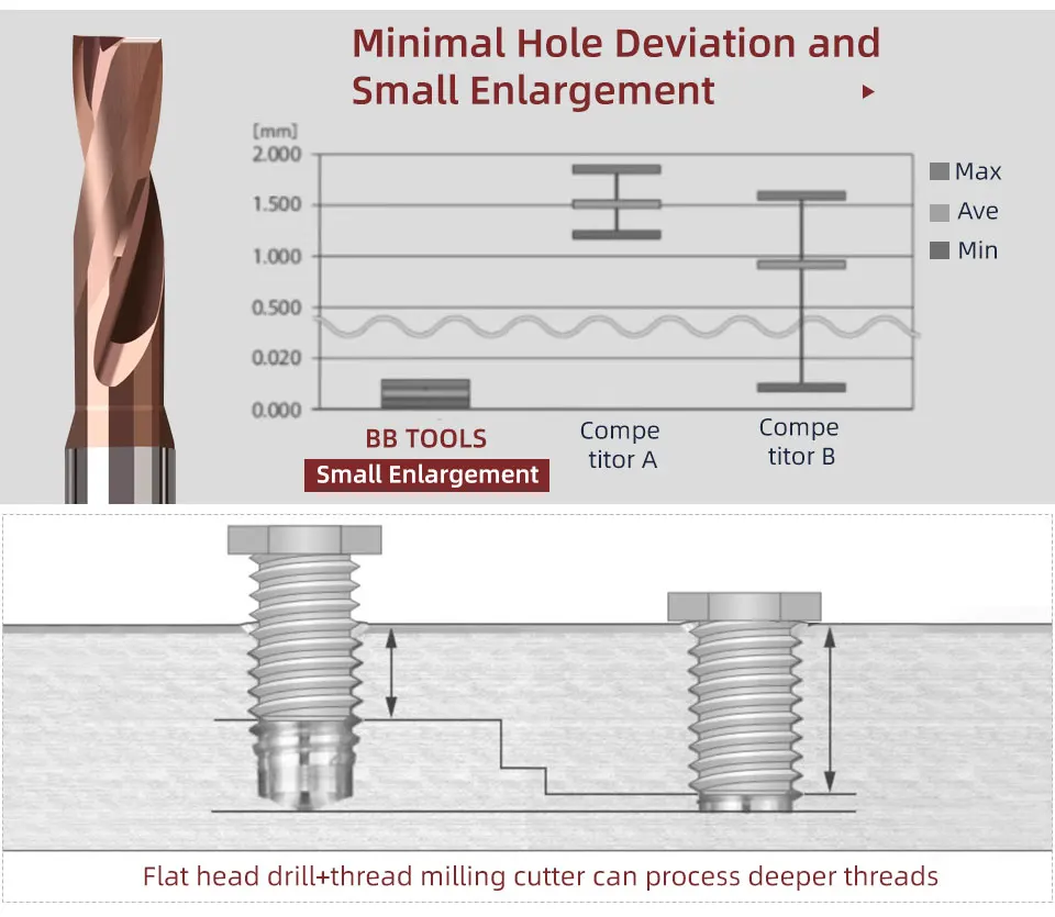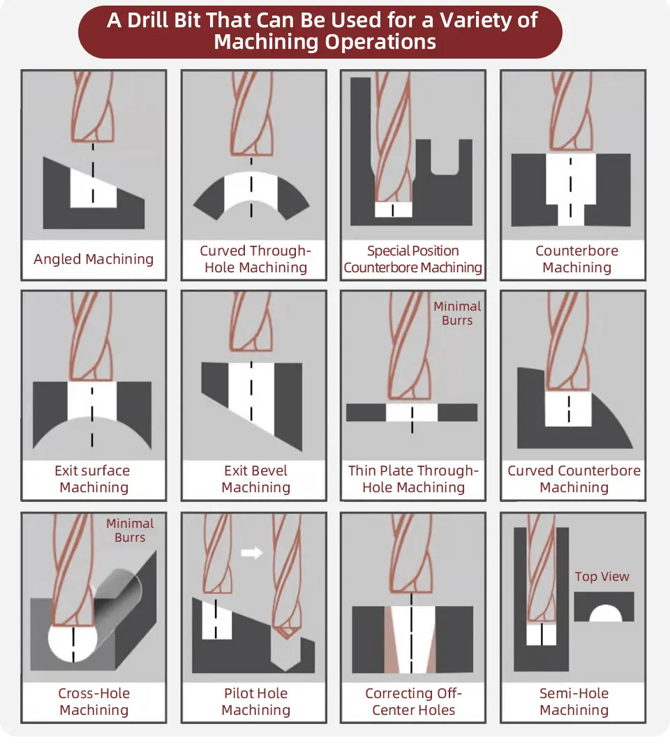 Some counterbore holes are made of flat-head drilling with higher efficiency and more convenient use, so there is no need to use milling cutter to insert milling to increase the machining time.